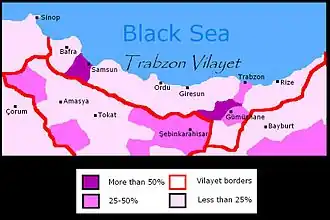 | Distribution of Millets in Trebizond Vilayet[25] | |||||||