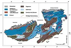 - ^ a b Martin Meschede (2015) Geologie Deutschlands: Ein prozessorientierter Ansatz; Springer-Verlag; ISBN 9783662452981; pp. 81/82.