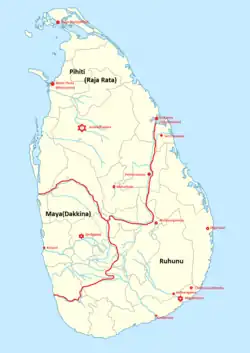 The Principality of Ruhuna (Sinhala: රුහුණ, [ruɦuɳə]), also referred to as the Kingdom of Ruhuna, is a region of present-day Southern and Eastern Sri Lanka. It was the centre of a flourishing civilisation and the cultural and economic centres of ancient Sri Lanka. Magama, Tissamaharama and Mahanagakula (now called as Ambalantota) were established here.[1][2]