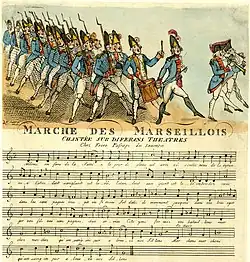Provence produced some memorable figures in the French Revolution; both moderates such as the comte de Mirabeau and figures of the far left such as the Marquis de Sade; there was also the military figure Charles Barbaroux and the theorist Emmanuel-Joseph Sieyès (1748–1836), who instigated the coup of 18 Brumaire which brought Napoleon to power. The revolutionary anthem La Marseillaise despite its origins on the Rhine got its name because revolutionary volunteers from Marseille sang it on the streets of Paris.
