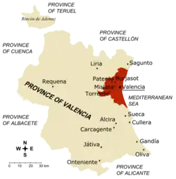![]() Map of Spain with Province of Valencia highlighted | |