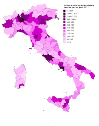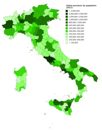 Italian provinces (with the exception of the current Sardinian provinces) correspond to the NUTS 3 regions.[2]