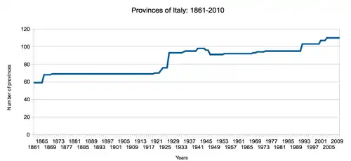 In 2014 the Delrio Law[17] transformed the provinces of Italy in a reduced number of broader administrative entities.[18]