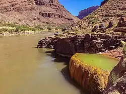 Pumpkin Spring is a geothermal heated mineral water hot spring located in the Grand Canyon in Arizona.