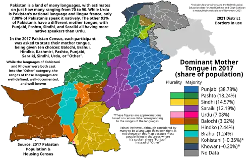 | • Ethnic groups | Punjabis Minor: Balochs, Biharis, Dogras, Haryanvis, Himachalis, Hindkowans, Kashmiris, Muhajirs, Pashtuns, Saraikis, Sindhis[1] |