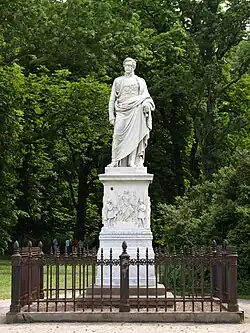 The palace park (Schlosspark) was laid out in 1804 by Wilhelm Malte I. in the style of a French garden. Later it was transformed into an English landscape park. It has numerous impressive views of the lagoon or bodden countryside. Structures that survived the East German era are the orangery of 1824, the royal stables built from 1821 to 1824, the mausoleum of 1867, the palace church built from 1844 to 1846, the parish church, the monkey house and aviary from 1830/35. Putbus Palace, which was once surrounded by the park, was demolished in the 1960s. The park also has other unusual dendrological specimens such as giant and ancient sequoias, cedars, yellow-blossomed horse chestnuts and tulip poplars. Attached to the Schlosspark is a wildlife enclosure for Red and Fallow Deer.