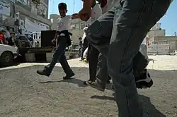 Palestinian boys practising dabke folk dancing in Qalqilya