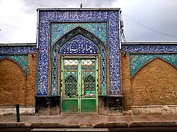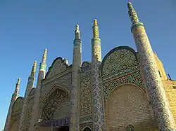 Another early monument is the Heydariyeh Mosque, which was probably built a few years after the Jameh mosque.[8] Its original function is unclear; it could have been either a mosque or a madrasa.[8] It features a very early use of glazed ornamentation.[8] A unique architectural style emerged in Seljuk-era Qazvin that influenced architecture in surrounding regions, such as the mosques at Sojas and Ghorveh.[8]