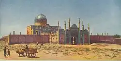 It was under the Mongols that there was large-scale Turkic migration into the Qazvin area.[8] Although at least some must have settled there during Seljuk times, it was during the Mongols that they started coming in larger numbers.[8] Several prominent Turkic families established themselves in Qazvin.[8] One of them was the Būlātmūriyān, who first came during the rule of Ögedei when their member Amir Takash was appointed shihna or military governor of Qazvin.[8] Another was the Qarāvulān, who acquired large landed estates but had already lost their prominence by the time of Hamdallah Mustawfi.[8] However, most of the main families at his time still traced their roots back to an Arab founder.[8] The religion was mostly Sunni of the Shafi'i madhhab, although there were Shi'i and Hanafi Sunni minorities.[8]