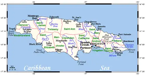 Four parishes of Jamaica, namely Clarendon, Manchester, Saint Ann, and Trelawny, meet at a quadripoint.