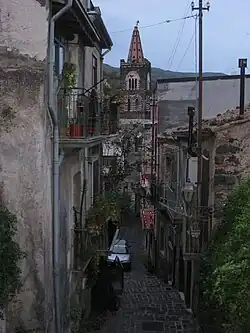 Randazzo (Sicilian: Rannazzu) is a town and comune in the Metropolitan City of Catania, Sicily, southern Italy. It is situated at the northern foot of Mount Etna, c. 70 kilometres (43 mi) northwest of Catania. It is the nearest town to the summit of Etna, and is one of the points from which the ascent may be made.