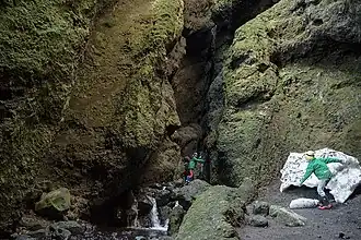 Rauðfeldsgjá (Icelandic pronunciation: [ˈrœyðˌfɛl(t)sˌcauː], lit. 'Rauðfeldur's Ravine') is a ravine in Snæfellsnes in Iceland.