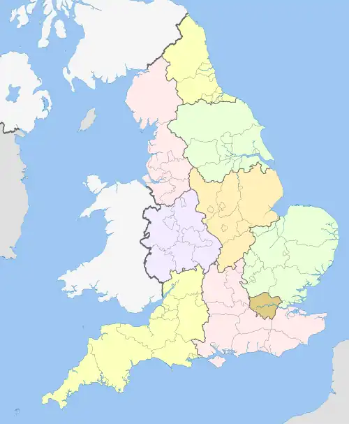 The regions of England, formerly known as the government office regions, are the highest tier of sub-national division in England. They were established in 1994[1] and follow the 1974–96 county borders. They are a continuation of the former 1940s standard regions which followed the 1889–1974 administrative county borders. Between 1994 and 2011, all nine regions had partly devolved functions; they no longer fulfil this role, continuing to be used for limited statistical purposes.[2]