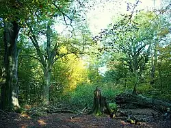 At over 200 km² in area the Reinhardswald is one of the largest forests and most sparsely populated regions in Germany; within Hesse it is the largest contiguous area of forest. Beech and oak, in particular, thrive here and there are extensive areas of wood pasture (Hutewald).