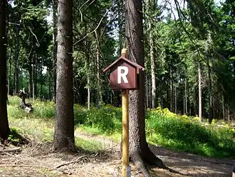 The Rennsteig (German pronunciation: [ˈʁɛnʃtaɪk]) is a ridge walk as well as a historical boundary path in the Thuringian Forest, Thuringian Highland and Franconian Forest in Central Germany. The long-distance trail runs for about 170 km (110 miles) from Eisenach and the Werra valley in the northwest to Blankenstein and the Selbitz river in the southeast.