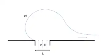 In the near-field the momentum of the plume is larger than its buoyancy. This balance is represented in the (dimensionless) Froude number, and is larger than one in the near-field, indicating supercritical flow. Both the liftoff point and the outer boundary of the near-field, the plume front, are characterized by critical flow conditions () and the flow in the near-field region shows features similar to a jet.[8] The momentum balance is dominated by barotropic and baroclinic pressure gradients, turbulent shear stresses, and flow acceleration. Flow deceleration is mainly caused by the shear stresses on the interface of the plume with the ambient ocean. In some cases a near-field region will not exist. This is for example the case if the width of the river mouth is large relative to the Rossby radius of deformation, , and the fresh water inflow will leave the river mouth as a far-field plume. When tides are large, the near-field plume is also known as the tidal plume.[9]