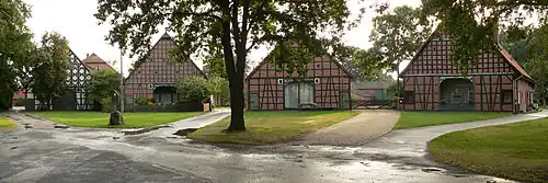 These villages were usually small, with only a few farmsteads, averaging perhaps around 5–7, and built away from tracks or roads, around an open central village green, which was a part of the commons, not allocated to any one particular farmer. The leading farmer, called a Schulze, had a slightly better plot, set in the centre opposite the entrance to the village, and usually extra land outside the circle called by its Wendish name Güsteneitz. They are almost always to be found on the border between low-lying wetter land near to water and higher drier land more suitable for cultivation, called here geest.It is striking that most Rundlinge are situated on the 20 meter above sea-level line. Slavic settlers seem to have chosen this level so that they had access to both arable (in front of the village) and pasture land (behind the village). Access was from the higher Geest land, where there were through paths, and the villages originally were cul-de-sacs.The villages were fairly densely scattered across the area to be colonized, with each one barely a kilometre from its neighbour. This means that there were very many, fairly small, settlements. In very very few cases have they been amalgamated into larger villages or subsumed as suburbs of towns. Even today this pattern has continued. Of the 324 named settlements in today's Lüchow-Dannenberg, over 200 are or were once Rundlinge, and virtually none have been swallowed up by the encroachment of towns, or have been amalgamated into larger villages, although since the reforms of 1972, most have lost their political separateness. Prior to 1972 each village had its own separate political status, which led to there being 230 entities, Gemeinden, in what was then and still is one of the most sparsely settled areas of modern Germany, East or West. The smallest of the 230 was Liepehöfen, which had the princely number of 3 adult voters. Instead of 230 there are now 27 Gemeinden.[5]
