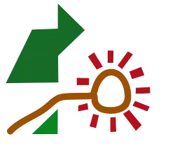 There are very many circular shaped villages all across the world, but only those created by the Ostsiedlung in the 12th and 13th century should use the name Rundling.[4] Although superficially similar to the Opole in Poland, or the villages around a village green in the UK, they do not have the same genesis and history as the Rundlinge of central Germany. The key is the division of village land into triangular "slices of cake" shapes, between wet pasture land and drier arable land, and the creation of exactly calculated strip farming on the arable land, to ensure absolute fairness of division between farmers, equal under the law. The illustration from the Heidelberger Sachsenspiegel (Cod. Pal.germ.164) of 1300, shows the relationship between the nobility (in green), the local landlords (with a straw hat) and the farmers, who clear the undergrowth of bush, and build the villages on greenfield sites. Later the local landlords act as administrators carrying out the wishes of the nobility, and creating churches and infrastructure. It was exactly so that the rundling villages were created.