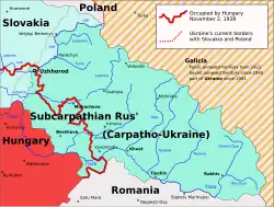 Carpathian Ruthenia (Hungarian: Kárpátalja, Ukrainian: Закарпаття, romanized: Zakarpattia) became part of the newly founded Hungarian Kingdom in 1000. In May 1919, it was incorporated with nominal autonomy into Czechoslovakia as Subcarpathian Rus'. Since then, Ruthenian people have been divided into three orientations: Russophiles, who saw Ruthenians as part of the Russian nation; Ukrainophiles, who like their Galician counterparts across the Carpathian Mountains considered Ruthenians part of the Ukrainian nation; and Ruthenophiles, who claimed that Carpatho-Ruthenians were a separate nation and who wanted to develop a native Rusyn language and culture.[35]