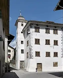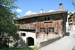The Türelihus (Türeli House) is located in the center of Valendas and is one of the most historically valuable houses in the village. The interior contains many of the original furnishings from the Renaissance and Baroque eras. The original building was constructed in 1485. In 1554 it was expanded, this expansion was known as the Renaissance phase, with a spiral staircase within a tower and a stable was added to the north side. In 1775 it was renovated in the baroque style. The four-story building was abandoned for many years and had begun to decay. In 1994, the first attempt to renovate this building ended with only the addition of a temporary roof.[17]