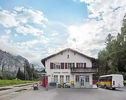 Versam-Safien station is located some 250 metres (820 ft) lower than the village of Versam, and about 3.6 km (2.2 mi) to the north. To reach the village directly, a PostAuto bus service provides a connection, which also serves Thalkirch and Tenna.