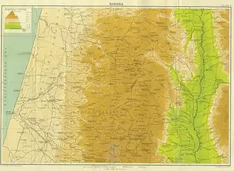 During the Ottoman Period, the northern part of Samaria belonged to the Turabay Emirate (1517–1683), which encompassed also the Jezreel Valley, Haifa, Jenin, Beit She'an Valley, northern Jabal Nablus, Bilad al-Ruha/Ramot Menashe, and the northern part of the Sharon plain.[52][53] The areas south of Jenin, including Nablus itself and its hinterland up to the Yarkon River, formed a separate district called the District of Nablus.[54]
