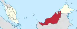 Sarawak (/səˈrɑːwɒk/ sə-RAH-wok, Malay: [saˈrawaʔ]) is a state[18][19] of Malaysia. It is the largest among the 13 states, with an area almost equal to that of Peninsular Malaysia. Sarawak is located in East Malaysia in northwest Borneo, and is bordered by the Malaysian state of Sabah to the northeast, Kalimantan (the Indonesian portion of Borneo) to the south, and Brunei in the north. The state capital, Kuching, is the largest city in Sarawak, the economic centre of the state, and the seat of the Sarawak state government. Other cities and towns in Sarawak include Miri, Sibu, and Bintulu. As of 2020 Malaysia census, the population of Sarawak was 2.453 million.[9] Sarawak has an equatorial climate with tropical rainforests and abundant animal and plant species. It has several prominent cave systems at Gunung Mulu National Park. Rajang River is the longest river in Malaysia; Bakun Dam, one of the largest dams in Southeast Asia, is located on one of its tributaries, the Balui River. Mount Murud is the highest point in the state. Sarawak is the only state of Malaysia with a Christian majority.[20][21]