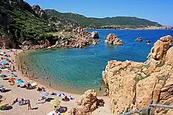 Owing to the variety of Sardinia's ecosystems, which include mountains,[11] woods, plains, stretches of largely uninhabited territory, streams, rocky coasts, and long sandy beaches,[12][13] Sardinia has been metaphorically described as a micro-continent.[14] In the modern era, many travelers and writers have extolled the beauty of its long-untouched landscapes, which retain vestiges of the Nuragic civilization.[15]