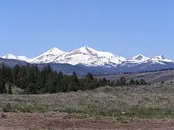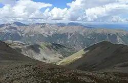 The Sawatch Range /səˈwɑː/ or Saguache Range[1][2][3] is a high and extensive mountain range in central Colorado which includes eight of the twenty highest peaks in the Rocky Mountains, including Mount Elbert, at 14,440 feet (4,401 m) elevation, the highest peak in the Rockies.