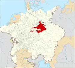Since the late 6th century, the territory of modern-day Saxony and parts of Thuringia was populated by Polabian Slavs, most prominently the Sorbs. It was conquered by Francia and subsequently organized as the Sorbian March.[6][7] A legacy of this period is the modern ethnic group of Sorbs in Saxony. Eastern and western[8] parts of present Saxony were ruled by Bohemia at various times between 1075 and 1635 (with some intermissions), and Schirgiswalde (Upper Sorbian: Šěrachów; Czech: Šerachov) remained a Bohemian exclave until 1809. Eastern parts were also ruled by Poland between 1002 and 1032, by the Duchy of Jawor, the southwesternmost duchy of fragmented Piast-ruled Poland, from 1319 to 1346,[9][10] and by Hungary from 1469 to 1490,[11] and Pechern (Upper Sorbian: Pěchč) was part of the Duchy of Żagań, one of the Lower Silesian duchies formed in the course of the medieval fragmentation of Poland,[12] remaining under the Piast dynasty until 1472.