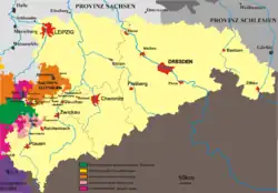 1. ^ German: Sachsen [ˈzaksn̩] ; Upper Saxon: Saggsn; Upper Sorbian: Sakska