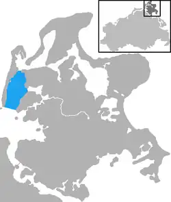 The Schaproder Bodden is a bodden on the Baltic Sea coast between the island of Hiddensee in the west and the islands of Rügen and Ummanz in the east. To the north the Schaproder Bodden is linked to the Vitter Bodden by the so-called Trog between the Fährinsel and the Stolper Haken of Rügen island. To the south the bodden transitions into the Kubitzer Bodden. A boundary would be the line between the southern tips of the Hiddensee (Geller Haken) and Ummanz or the link from the Geller Haken - Insel Heuwiese.