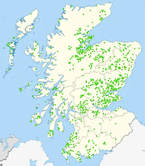 Goidelic roots accounts for most place-names in eastern Scotland, with a few Anglic names in Fife and Angus and with a small number Pictish elements assimilated into the total toponymy.[1]