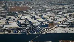 NJ Transit maintained a Harmon Cove station from 1978 until the re-routing of the Bergen County Line and the opening of Secaucus Junction in August 2003. This caused NJ Transit bus 972 to be created, which connected the area of the Harmon Cove station to Secaucus Junction, and in 2006 the route was renumbered to 329.[55] The HX Draw is used by the line to cross the river. NJ Transit bus 329 serves the area. The Hudson Regional Hospital[56] and several hotels are located in Harmon Cove,[57][58] whose main thoroughfare is Meadowlands Parkway,[59] along which office and manufacturing buildings are found. The Harmon Cove Outlet Center is an outlet shopping district[60] further inland from the Hackensack riverfront. Hartz Mountain Industries operates many facilities and properties in Harmon Cove.