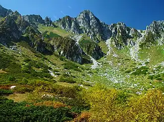 Senjōjiki Cirque (千畳敷カール) is a cirque (glacial landform) that lies just under Mount Hōken, Kiso Mountains in Nagano prefecture, Japan. It is called "Senjōjiki Kaaru" in Japanese. "Senjōjiki" means the wideness of 1000 tatami mats.