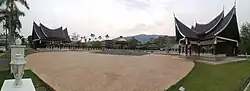 Among the villages in the area are Kampung Tanah Datar, Kampung Tengah, Kampung Gamin, Kampung Istana Lama, Kampung Sikai, Kampung Buyau, Kampung Batu Hampar, Kampung Mertang Seberang, Kampung Merual, Kampung Galau, Kampung Masjid Terbakar, Kampung Padang Biawas, Kampung Jumbang, Kampong Gunung Pasir, and others. A few traditionally styled houses, derivative of the Minangkabau design Rumah Gadang, remain standing around Seri Menanti and in the adjacent villages. A significant portion of the land in Seri Menanti is Malay Reserve and Malay Customary Land (Malay: Tanah Adat).
