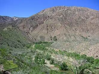 The hot springs are located 20 miles northeast of Sespe Creek canyon, approximately 20 miles from Matilija Canyon and 15 miles south of the San Andreas Fault.[7] The hot springs are accessible on foot or by horseback only. There are three rugged trails leading to the springs. The springs can be reached via the Sespe River Trail (16.8 miles each way); the Johnson Ridge Trail (9.5 miles each way); and the Alder Creek Trail (7.5 miles each way).[6] Willett Hot Springs are also located in the Sespe Wilderness area.[8]
