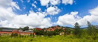 The name Shanxi means 'west of the mountains', a reference to its location west of the Taihang Mountains.[6] Shanxi borders Hebei to the east, Henan to the south, Shaanxi to the west and Inner Mongolia to the north. Shanxi's terrain is characterised by a plateau bounded partly by mountain ranges. Shanxi's culture is largely dominated by the ethnic Han majority, who make up over 99% of its population.[7] Jin Chinese is considered by some linguists to be a distinct language from Mandarin and its geographical range covers most of Shanxi. Both Jin and Mandarin are spoken in Shanxi.