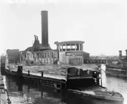 The first shipyard on Shooters Island by Newark Bay and Staten Island on the west shore of Upper New York Bay was established in 1860 by David Decker.[2] From 1898[3] until 1910, the island was home to a major shipyard, the Townsend-Downey Shipbuilding Company. Theodore E. Ferris (1872-1953), who later was a prominent maritime architect designed ships used by the American government in the First World War (1914/1917-1918), was an employee of the firm.[4] By 1903, the island site was acquired by the Tidewater Oil Company founded 1887 by E. W. Marland for the next decade, Around this time it was also home to the later Standard Shipbuilding Company (both firms later subsidiaries of the huge conglomerate Standard Oil Company and its Rockefeller family interests. Standard which bought the entire island in 1915, the year after the Great War began in Europe, anticipating future American military and shipping needs with access and expansion space alongside the New York Bay and bustling major port of New York on the East Coast of the United States.[3] The entire island by the late 19th century was occupied by buildings, industrial facilities, shops, docks, including a foundry, pattern shop, and offices. There were major docks, piers and shipways that faced to the east and Upper New York Bay / New York Harbor..