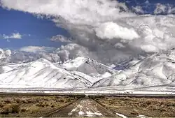 Mount Jefferson and Shoshone Mountain in the Toquima Range from Nevada State Route 376 north of Carvers, Nevada | |