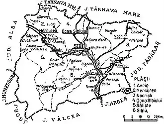 The county originally consisted of the city of Sibiu and four districts (plăși):[7]