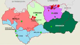 | Location | Provinces of Badajoz, (Extremadura), Ciudad Real, (Castile-La Mancha) and Córdoba, Jaén, Sevilla and Huelva (Andalusia) |