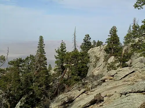 The flora is distinct from that of 'mainland' Mexico across the Gulf of California to the east, and shares many species with the Laguna Mountains and Cuyamaca Mountains, also Peninsular Ranges, in San Diego County, California. Typical conifer species include white fir, sugar pine and Jeffrey pine.[4] The critically endangered San Pedro Mártir cypress (Hesperocyparis montana) is endemic to the Sierra.[5] The canyons of the lower eastern Sierra de Pedro Mártir are the southernmost of natural distribution of the California fan palm (Washingtonia filifera).[6] Native oaks include coast live oak (Quercus agrifolia), canyon live oak (Quercus chrysolepis), Engelmann oak (Quercus engelmannii), and Baja oak (Quercus peninsularis).