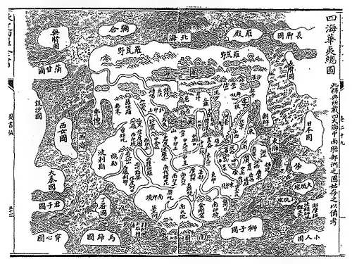 The Sihai Huayi Zongtu ("Complete Map of the Four Seas, China, and the Barbarians") is a Chinese world map dated to 1532, the 11th year of the Ming Dynasty's Jiajing Emperor.[1][2] It is now located in the Harvard Library.
