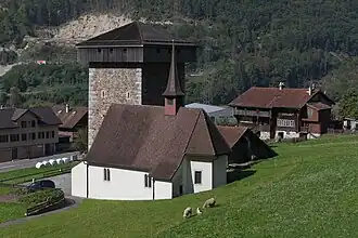 The Zwing Uri Castle, overlooking Amsteg, has some importance in Swiss historiography as the first fortress destroyed in the Burgenbruch at the beginning of the Swiss Confederacy.[5]