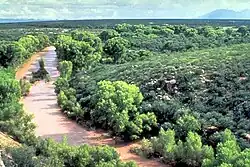 Siltation caused by raw sewage sludge and industrial waste in the New River as it passes from Mexicali to Calexico, California.