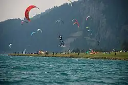 The lake is well known for its predictable winds and is therefore a popular venue for water-sailsports including particularly windsurfing, kitesurfing and dinghy-sailing. There is a major watersports centre on the SW shore. An advantage of this location is that spectators are never far from the action, as they might be for more conventional maritime locations.