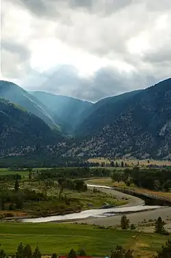 The Similkameen River runs through southern British Columbia, Canada, eventually discharging into the Okanogan River near Oroville, Washington, in the United States.[2][3] Through the Okanagan River, it drains to the Columbia River. The river is said to be named for an indigenous people called Similkameigh, meaning "treacherous waters".[4]