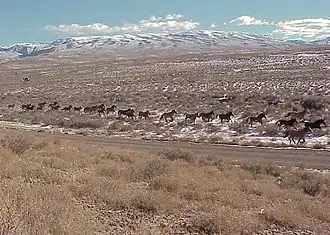 ![]() Horses crossing a plain near the Simpson Park Wilderness Study Area | |