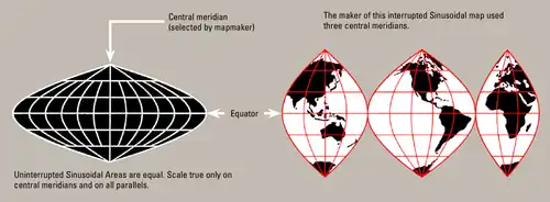 Media related to Sinusoidal projection at Wikimedia Commons- Pseudocylindrical Projections
